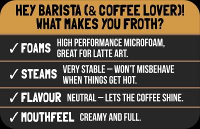 Oat beverage designed specifically with baristas in mind, Earth's Own Oat Barista Blend will add to your latte without overpowering it. With a taste profile created specifically to let the coffee shine, this oat milk steams easily and creates beautiful latte art.