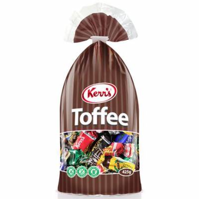 An assortment toffees made with real milk. Flavours include rum & butter, mint, vanilla, toasted coconut, licorice, coffee, spearmint nougat, and peppermint nougat.
