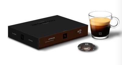 INTENSO is an intensely roasted blend of Brazilian and Ugandan coffee beans with bold aromatics and a touch of cocoa notes.