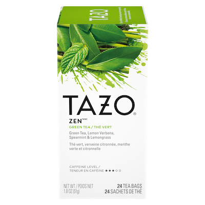 Tazo Zen is created using select full-flavored, pan-fired green teas from China, long fabled for their legendary properties. These teas converge with lemon verbena leaves, lemongrass and spearmint leaves in a blissful state. This distinctive flavor is nearly impossible to express in words; it is best to simply experience its sweet, lingering taste.